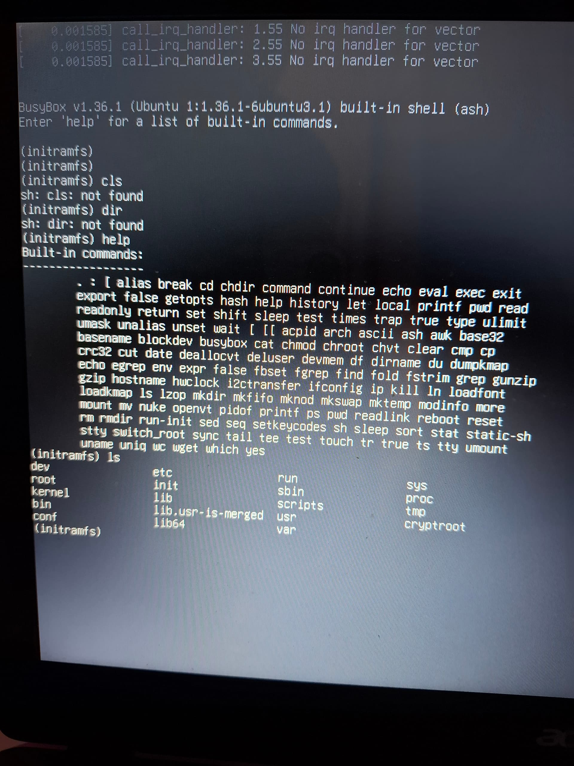 fsck -y su tutte le partizioni e dicci se è tutto okIn generale prova a seguire questa guida Fix Ubuntu Stuck on Initramfs Prompt (2025 Guide)